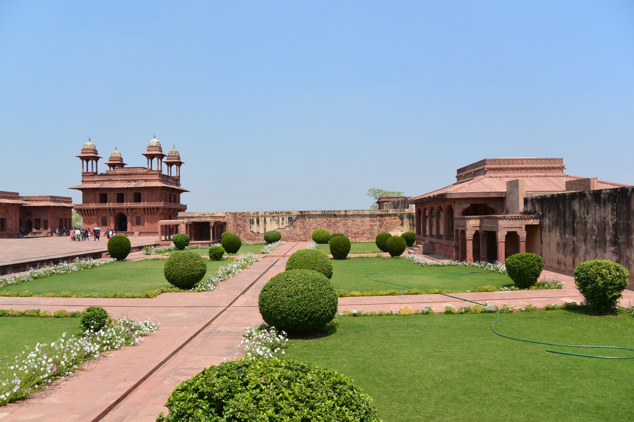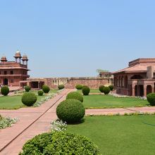 モスク地区と宮廷地区に分かれ、南側のジャマー・マスジットには巨大なブランド門と預言者シェーク・サリーム・チシュティーの白く輝く廟があり、壮大な回廊が四方を囲んでいます。