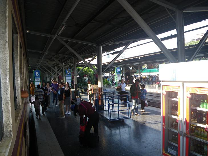 国鉄ファランポーン駅からドンムアン駅まで乗りました。ファランポーン駅の2番窓口でドンムアン駅までの3等切符を購入。1人5Bで料金がとても安かったでした。ドンムアン駅へはアユタヤとかへも行く電車なので3等車に乗るなら時間ギリギリに行くと混んでくるので早めに行って場所を確保した方が良いです。