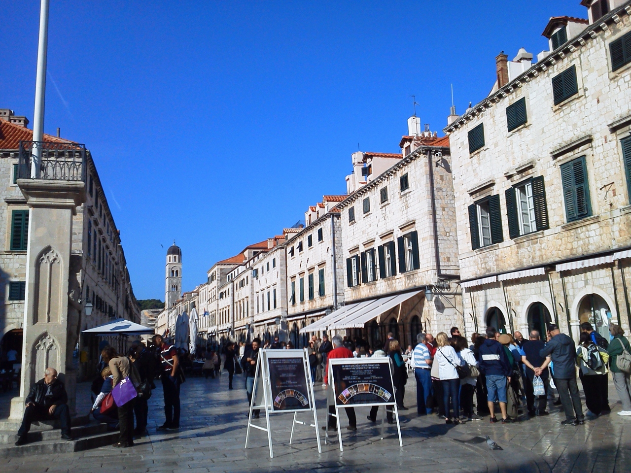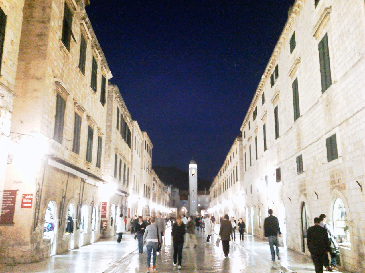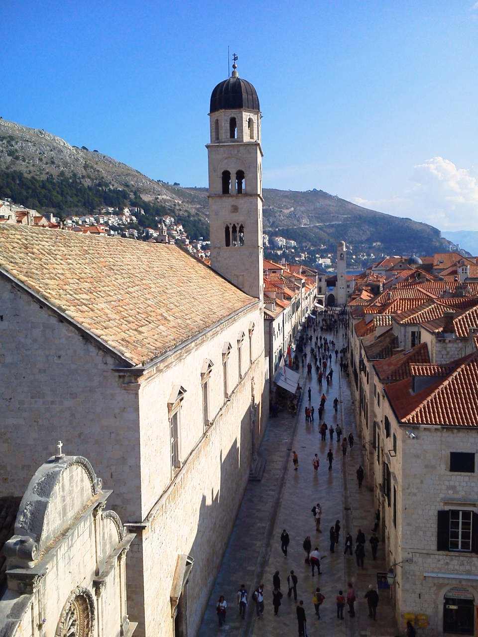 ドゥブロヴニクの旧市街にあるメインストリート。ピレ門から城壁をくぐって旧市街に入っていくとまっすぐ続いている石畳の通りで約300mカフェ、レストラン、土産物屋が並んでいて昼夜いつも賑わっている。旧市街はこの通り以外は狭くて入り組んでいる。
