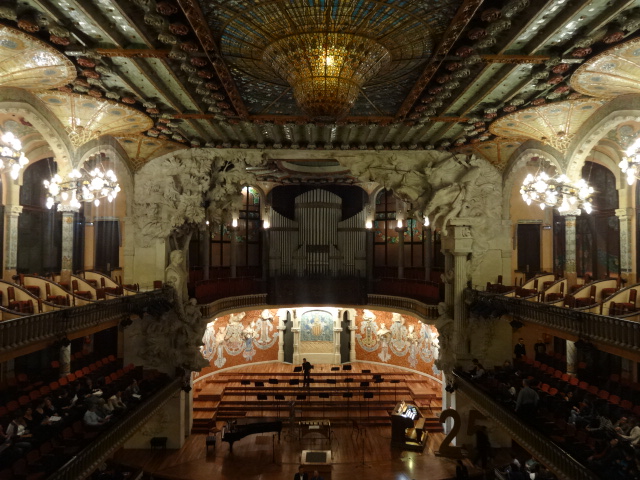 建築家ドメネクの最高傑作とも言われる、世界遺産の音楽堂です。外観やホールも美しいのですが、2階の大ホールは天井のタイルや彫刻、ステンドグラスのシャンデリアが圧巻です。