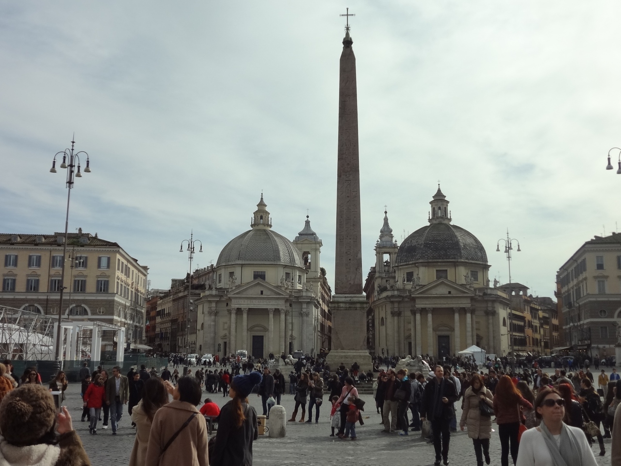 トレヴィの泉からスペイン広場まで徒歩観光した際、地図を見ながら「ポポロ広場も近いかも」と感じ、足を延ばしてみました。スペイン広場から徒歩5分、オベリスクと双子教会が印象的なポポロ広場に着きました。スペイン広場よりも広い割に人がそれほど多くなく、オベリスクの周りでのんびりすることができました。ローマの他の観光地と同様に警察車両も停まっており、治安面でも不安はありませんでした。ポポロ門のすぐ近くにメトロ・フラミニオ駅の入口がありましたが、駅構内をかなり歩かされました。地上より歩きやすかったですが...