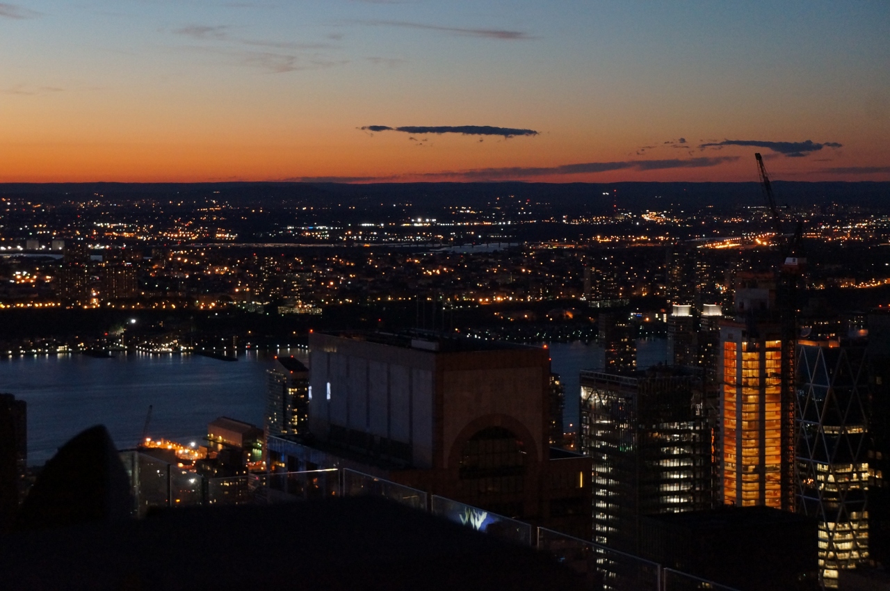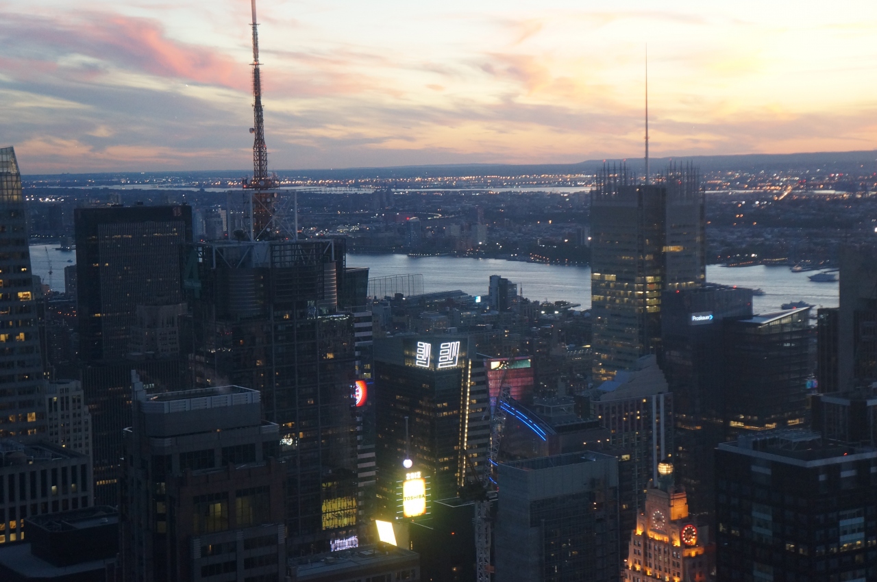 北には想像以上に巨大なセントラルパークを見下ろすことができ、夜は公園部分は闇となり、マンハッタンを占める存在感に圧倒されます。
