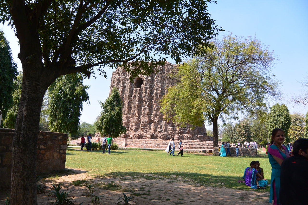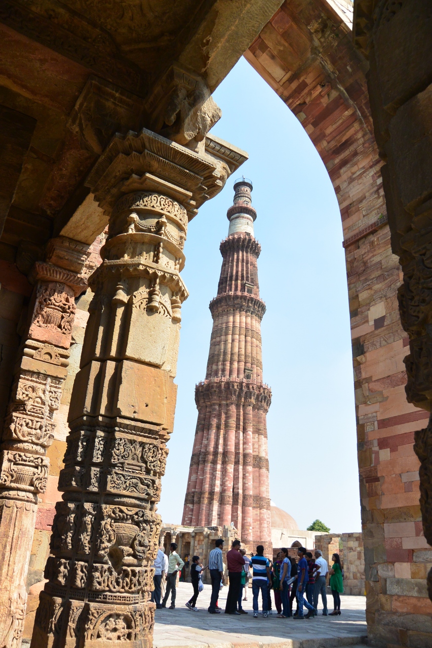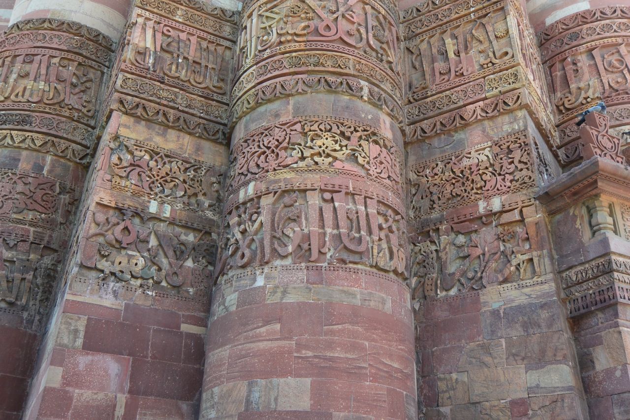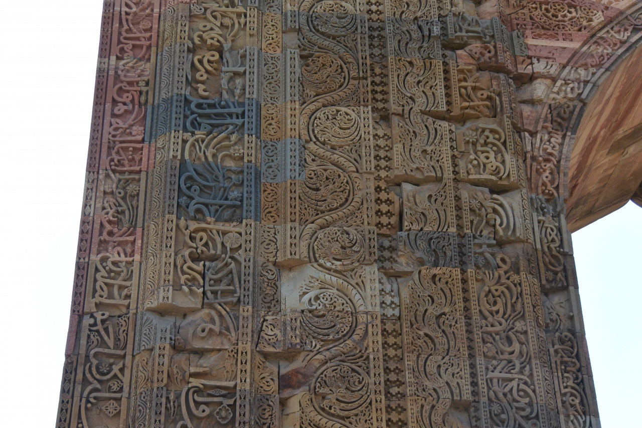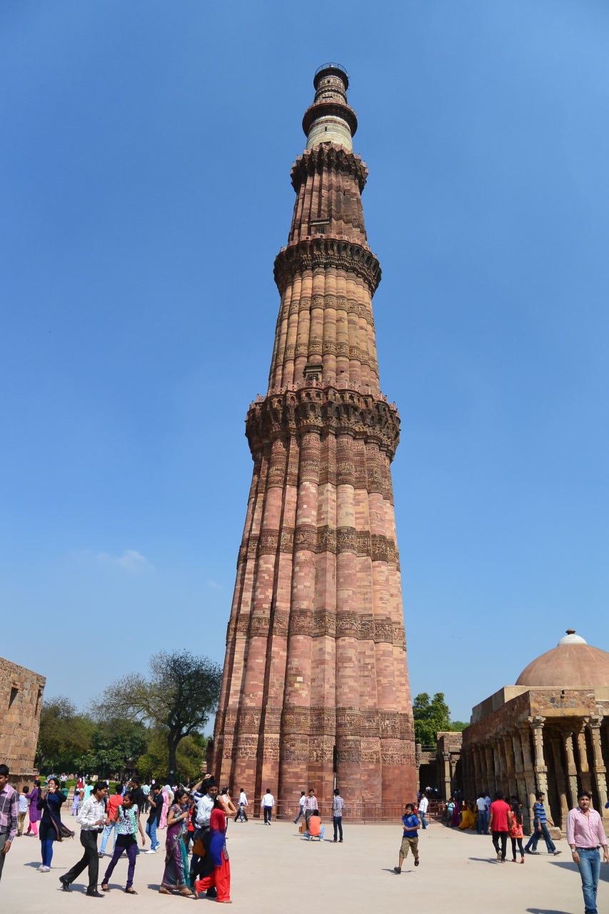 ミナールとはモスクの尖塔(ミナレット)のことをいい、塔は5層になって、上部に向かってだんだん細くなっています。下の3層は赤砂岩、上の2層は大理石と砂岩で造られています。