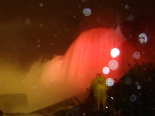 黄色いポンチョとサンダルを渡されて着替えると歩いてどんどん滝の落ちる所までいきます。しかも勇気のある人は落ちる滝に入る!?こともできます。相当痛いと思います。普通に歩くのも視界が悪くてスリリングです。カメラは防水必須です。そしてこのツアー夜の23時までやっています。ライトアップの中つき進むのは楽しかったです。