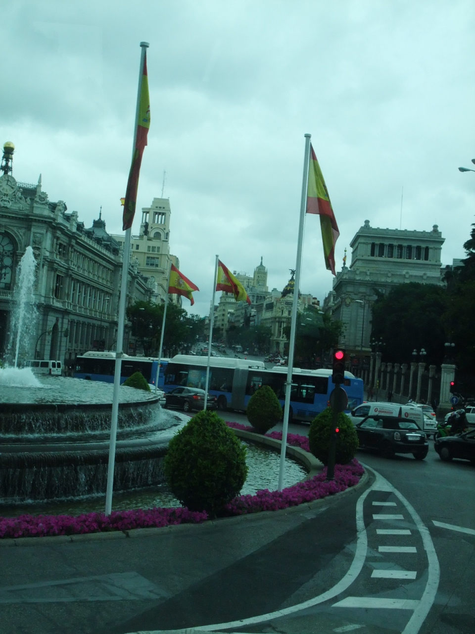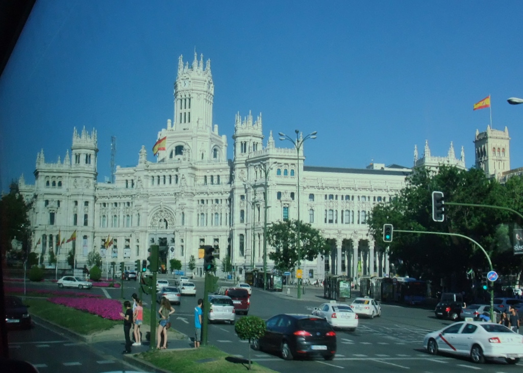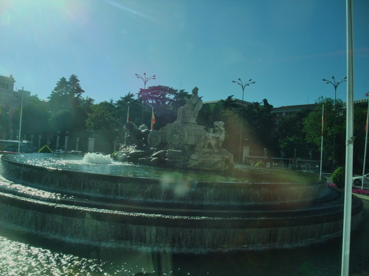 広場の中央には、ロドリゲスによって設計された有名なシベーレスの噴水があります。シベーレスとは、ギリシャ神話の女神キュベレのスペイン語名だそうです。農業と豊作をつかさどるギリシャ神話の大地母神キュベレ(シベーレス)が、ライオンのひく二頭立ての馬車に乗った姿が描かれています。