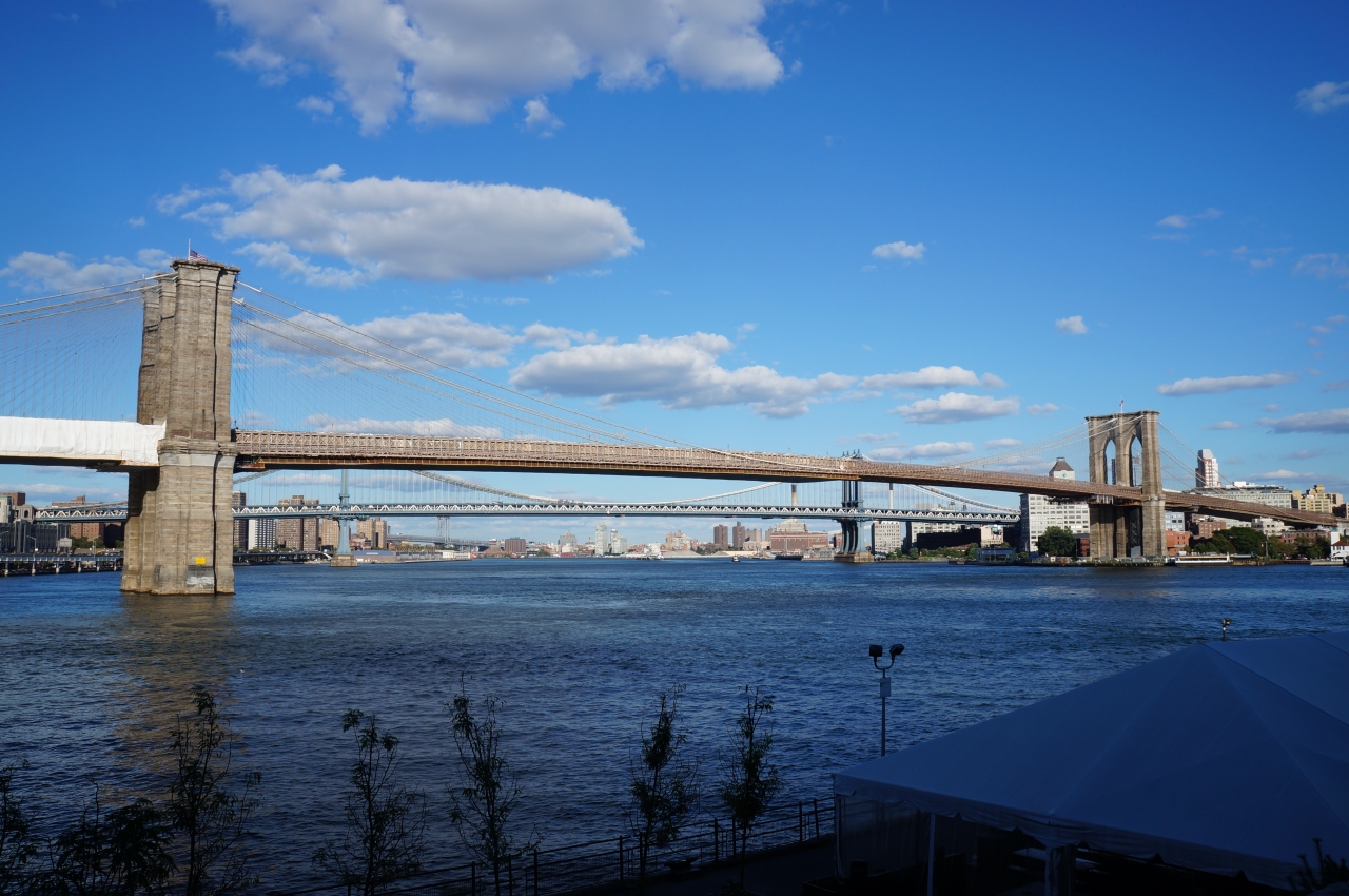 カフェでは川沿いのデッキから対岸のブルックリンとブルックリンブリッジが見え、軽食を備えてベンチで対岸の景色を見ながらのんびり過ごせます。