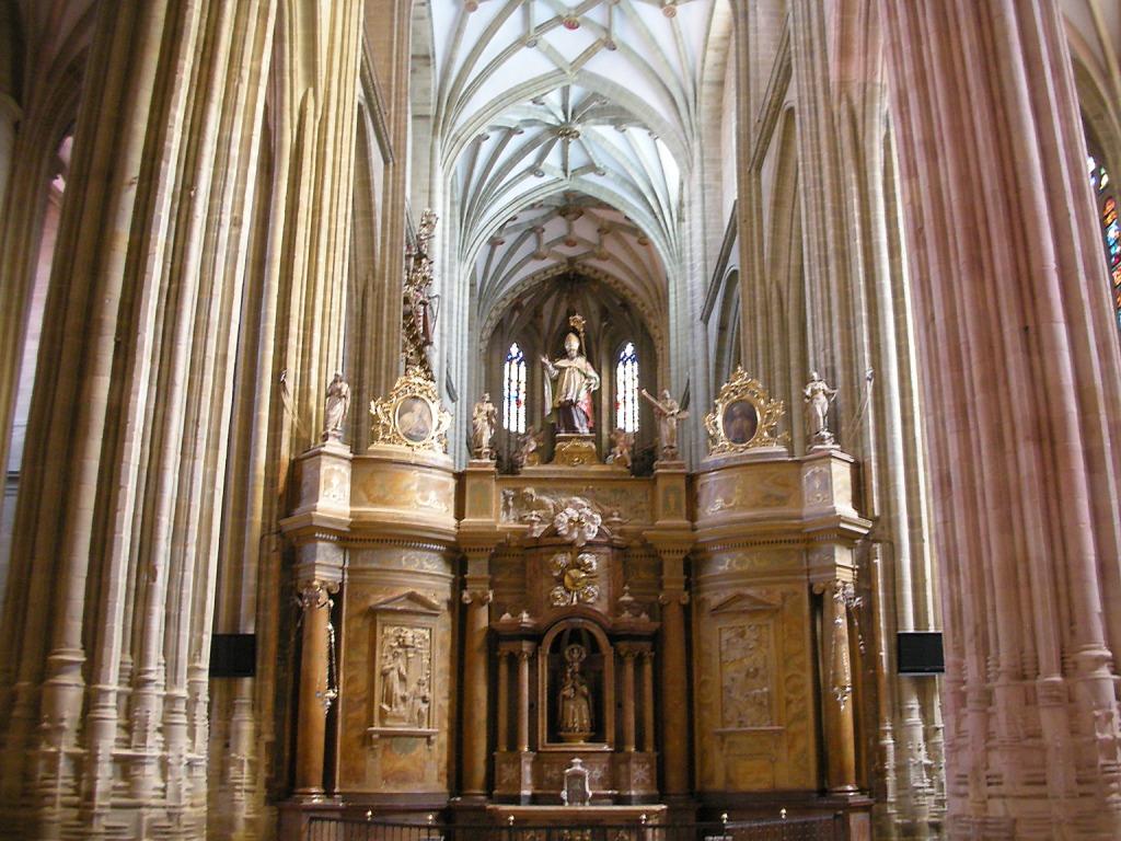 サンタ・マリア大聖堂(Catedral de Santa Maria)。15~18世紀という長い間に、ゴシック/ルネサンス/バロック様式が混ざり合った建物です。プラテレスコとバロック様式のファサードは2つの鐘塔を持っていますが、右側の塔は18世紀のリスボン大地震の際に崩れたものを、違う色の石材で修復したため色が異なっているそうです。月~土曜:9~11時、日祝日:11~13時...と、開いている時間は非常に短いです。但し、大聖堂の博物館からは入ることが出来る様です。大聖堂博物館(Museo Catedralico)は、入場ひとり2.5ユーロ。ここは月曜と日祝の午後を除いて、10~14時および16~20時に開いている模様(記載は夏場、冬は少し短い)。