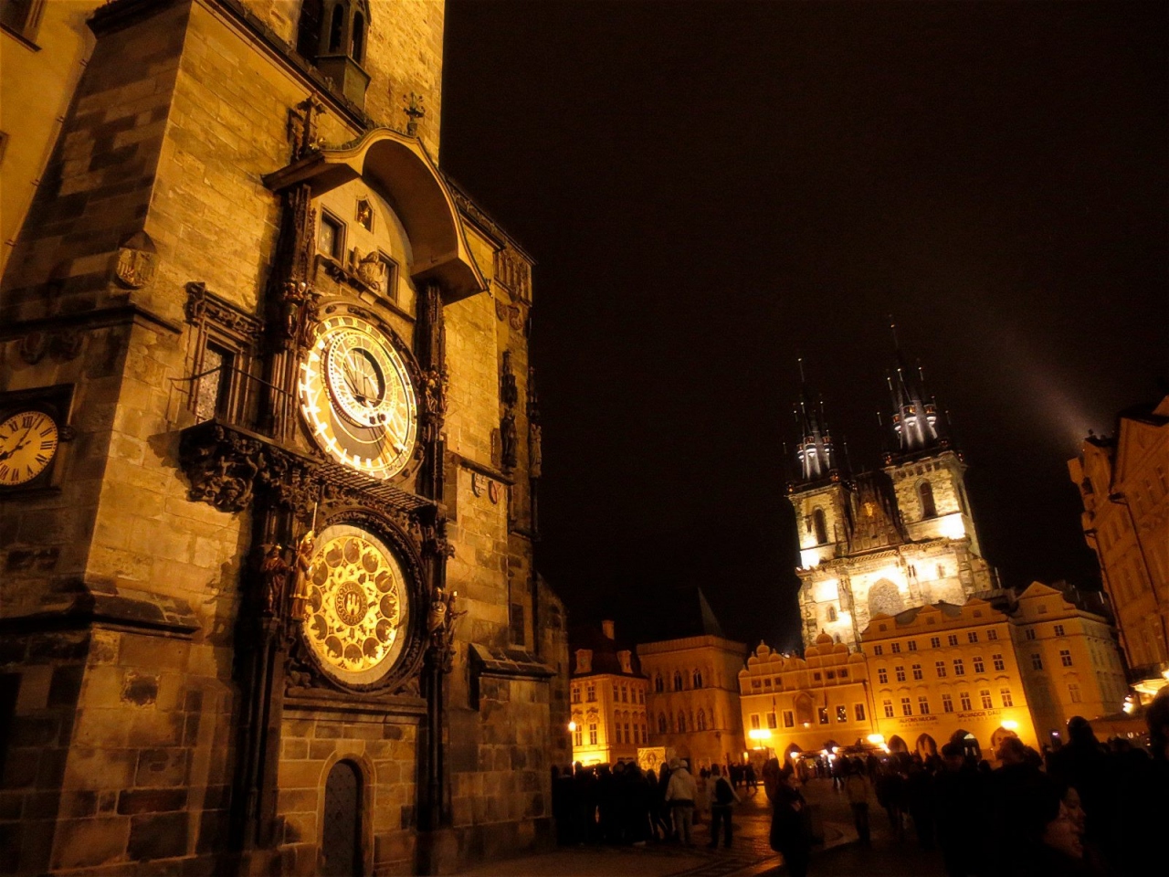 ここには常に人がたくさんいて、天文時計を見たり、出店で食べたり、音楽を聴いたり、思い思いに過ごしている感じです。