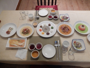 東莱別荘は「ミシュラン・グリーンガイド韓国編」に掲載された韓国伝統料理の店で、釜山にいた日本人が別荘として使っていた日本家屋のお屋敷で韓定食のフルコースが食べられる。去年は満席で予約が取れず1年越し、2013年の最後の食事をここでいただいた。屋敷はとても立派なたたずまいで、庭にも風情がありいい雰囲気だった。2005年のAPEC開催時にブッシュ大統領夫人も訪れたそうで、入口に記念写真が飾られていた。料理はコースのみで、奮発してひとり5万ウォンのコースを注文。落ち着いた静かな個室で、クジョルパンやシルソンロといった韓国宮廷料理を味わえ大満足。どれも上品な味付けで文句なくおいしかった。