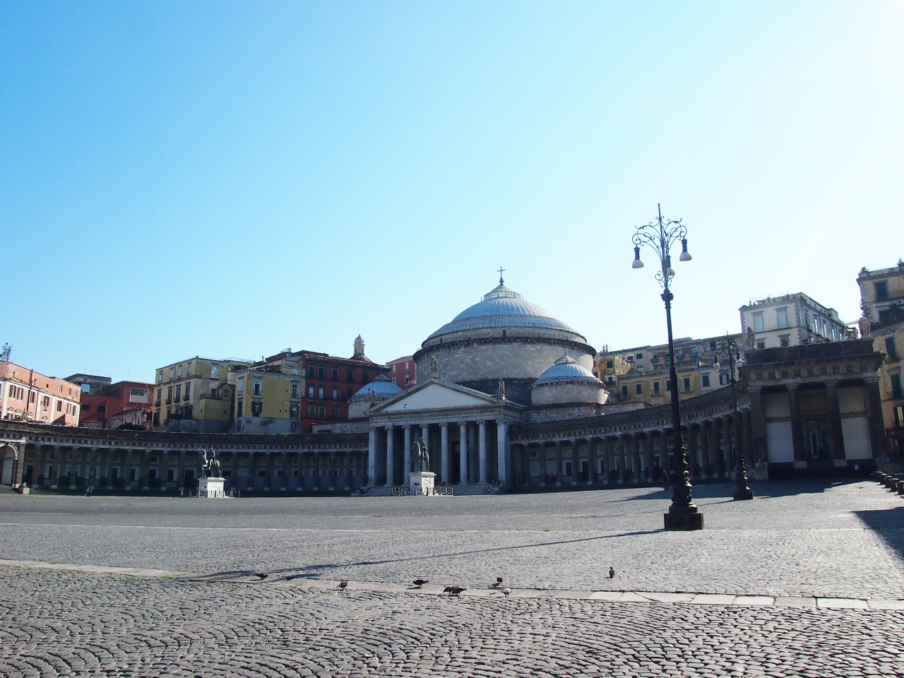 王宮やサン・カルロ劇場、サン・フランチェスコ・ディ・パオラ聖堂というスケールの大きな建物に囲まれている、とても広々とした広場です。式典や民衆の祭りに使われていたというのもよく解ります。王宮の壁に飾られた国王達の彫像を見ながらそぞろ歩くもよし、開放的な広場で写真撮影をするもよしです。