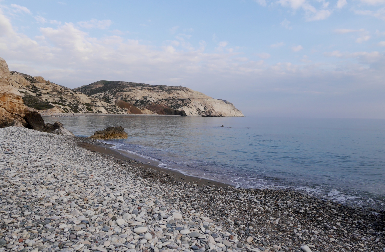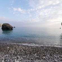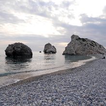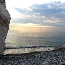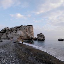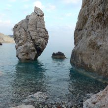 確かにボッティチェリのビーナスの誕生の絵のモデルにふさわしい海岸だ!Aphrodite生誕地で元旦夕方の冬の海でも青く透明ですばらしい.夏の晴れた日ならもっとすごいだろうと思う.この青さがどこから来ているのか.岩の成分によるのかよくわからない.しかしぜひ行ったほうがよい.アフロディテの泉は大したことなかったがここは素晴らしい!駐車場から地下道で行くことができる.