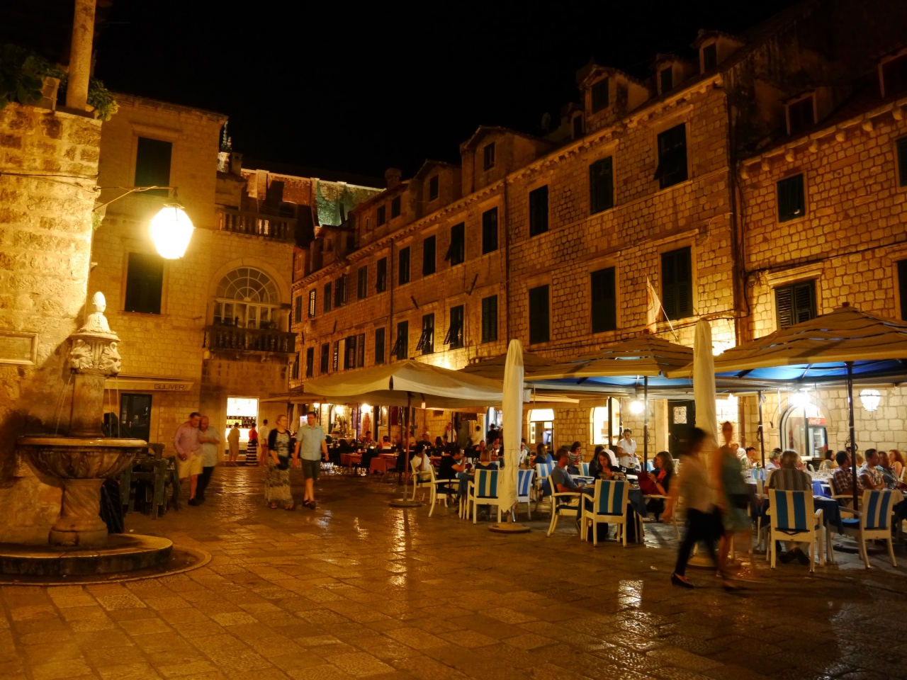夜は石畳がライトにてらされ宝石のように綺麗な町になります。