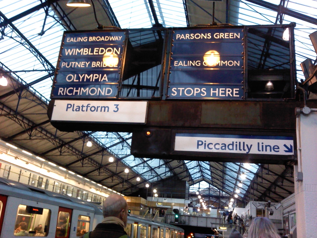 乗換にこの地下鉄駅で降りました。ヴィクトリア駅から、ウエストブロンプトン駅に行くのに、乗り換えが必要でした。ロンドン地下鉄のディクトリストラインは、終点が5方向もあり、ウインブルドン主点の方向へ行きたかったのですが、わからず、人に聞いてのりました。ロンドンの人でも、分かり難いそうです。