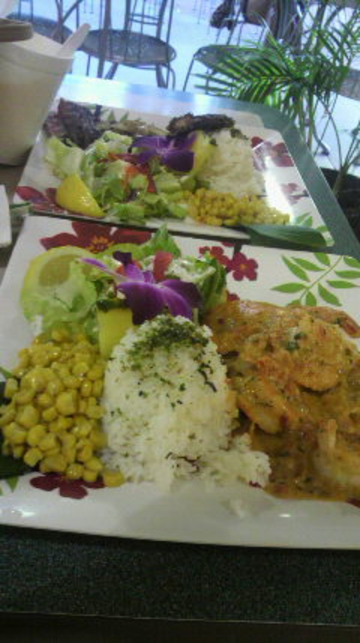 主人と初めてのハワイ。姉といっていた時は今の場所にはなかったので、便利になりました。海老だけでなくステーキとの盛り合わせにしました。ステーキが期待していませんでしたが、おいしかったです。