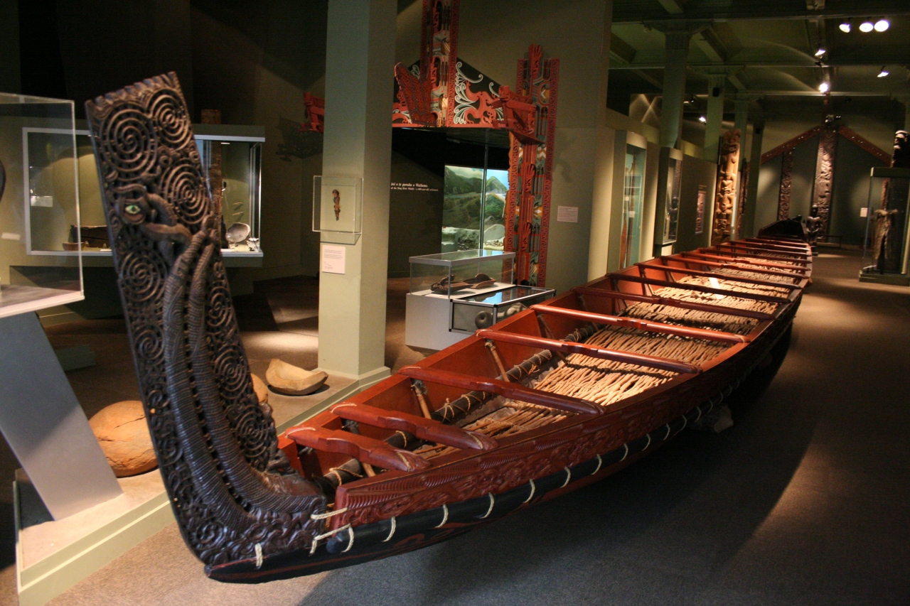 ダニーデンの街の中心部にある博物館です。基本的に無料です。マオリの大きなボートがそのまま陳列されているのが目を引きます。マオリの彫刻や小屋の模型もあり、マオリ文化に触れることのできるスペースとなっています。
