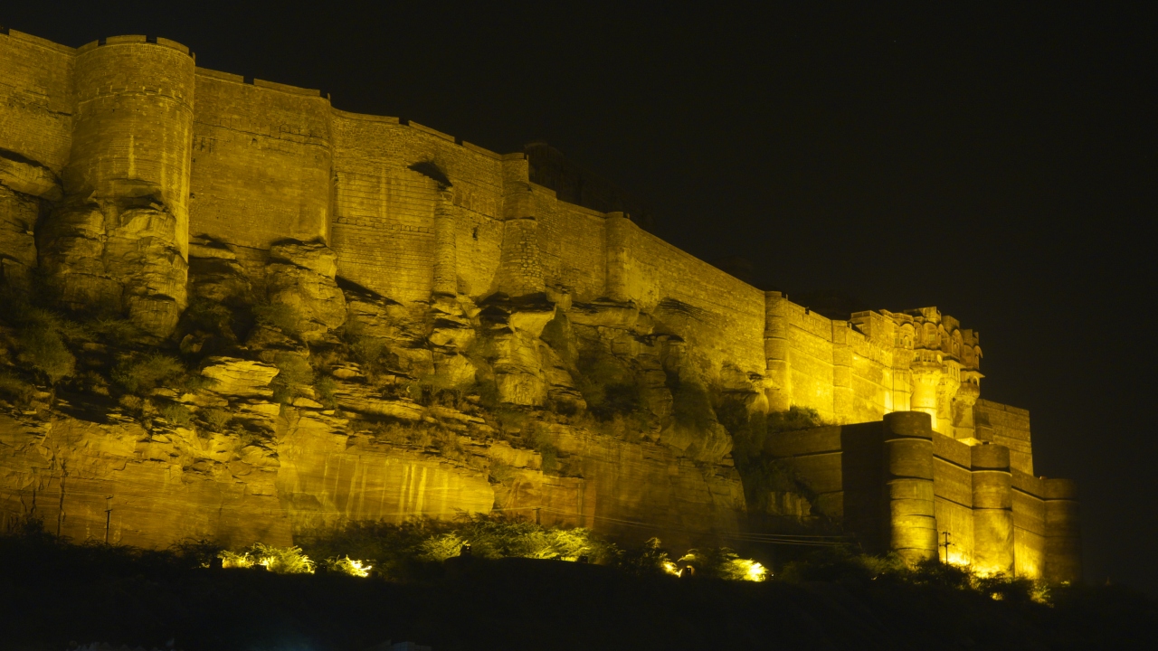 まさにそびえ立つという言葉がふさわしい、ど迫力の城塞です。城内からは眼下にブルーシティの街並みが見渡せ、遠くにはウメイドパワン宮殿が望めます。夜にはライトアップされ、巨大な城塞が闇夜に浮かび上がり幻想的でした。