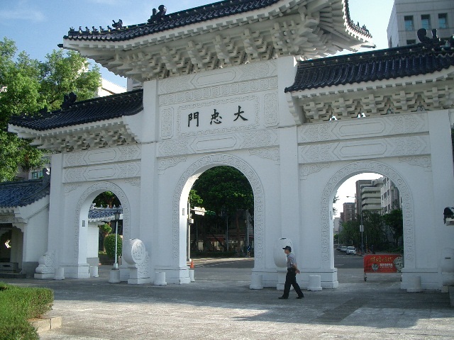 大忠門は中正紀念公園の裏門にあたる門です。私は自由広場門から入り、大忠門から出て東門市場へ行きました。大忠門の付近は中正紀念公園内でも緑がいっぱいある場所です。門近くの広場では、木陰が日光を遮ってくれるので少し涼しく感じます。市民(お年寄りが多かった)の方が、そこで朝の体操をやっていました。