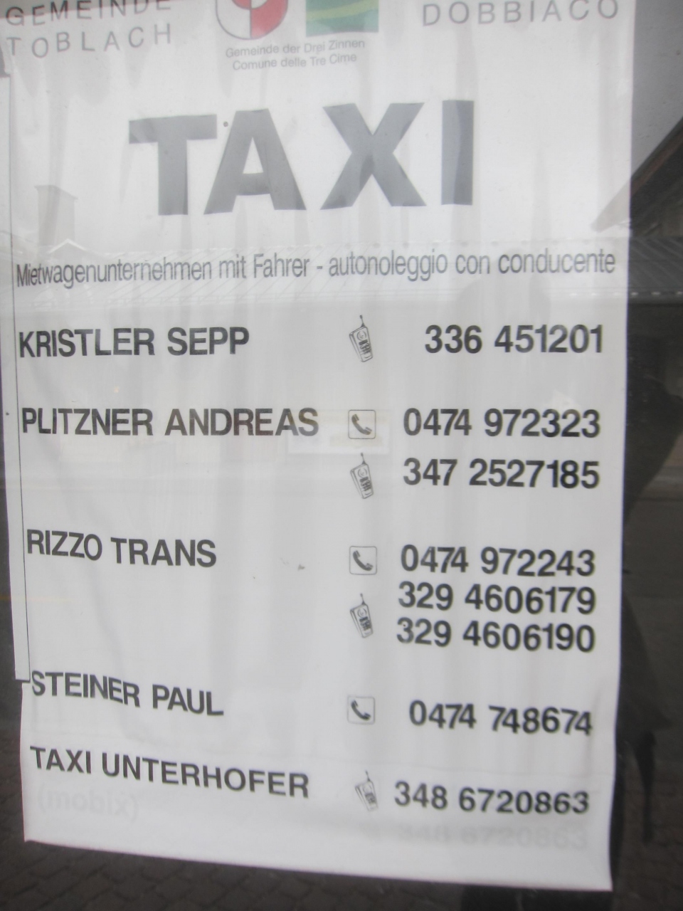 ・TAXI UNTERHOFER:348 6720863(携帯)