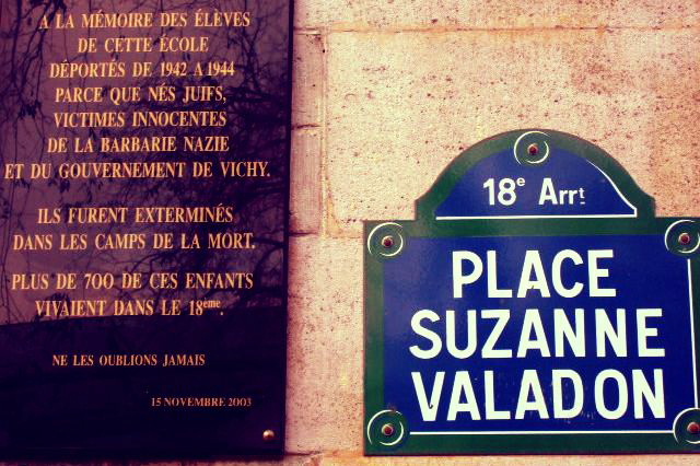 「Place Suzanne-Valadon(シュザンヌ・ヴァラドン広場)」の表示板の脇には、ナチ占領下のパリ・モンマルトルの苦い記憶を残す碑もありました。