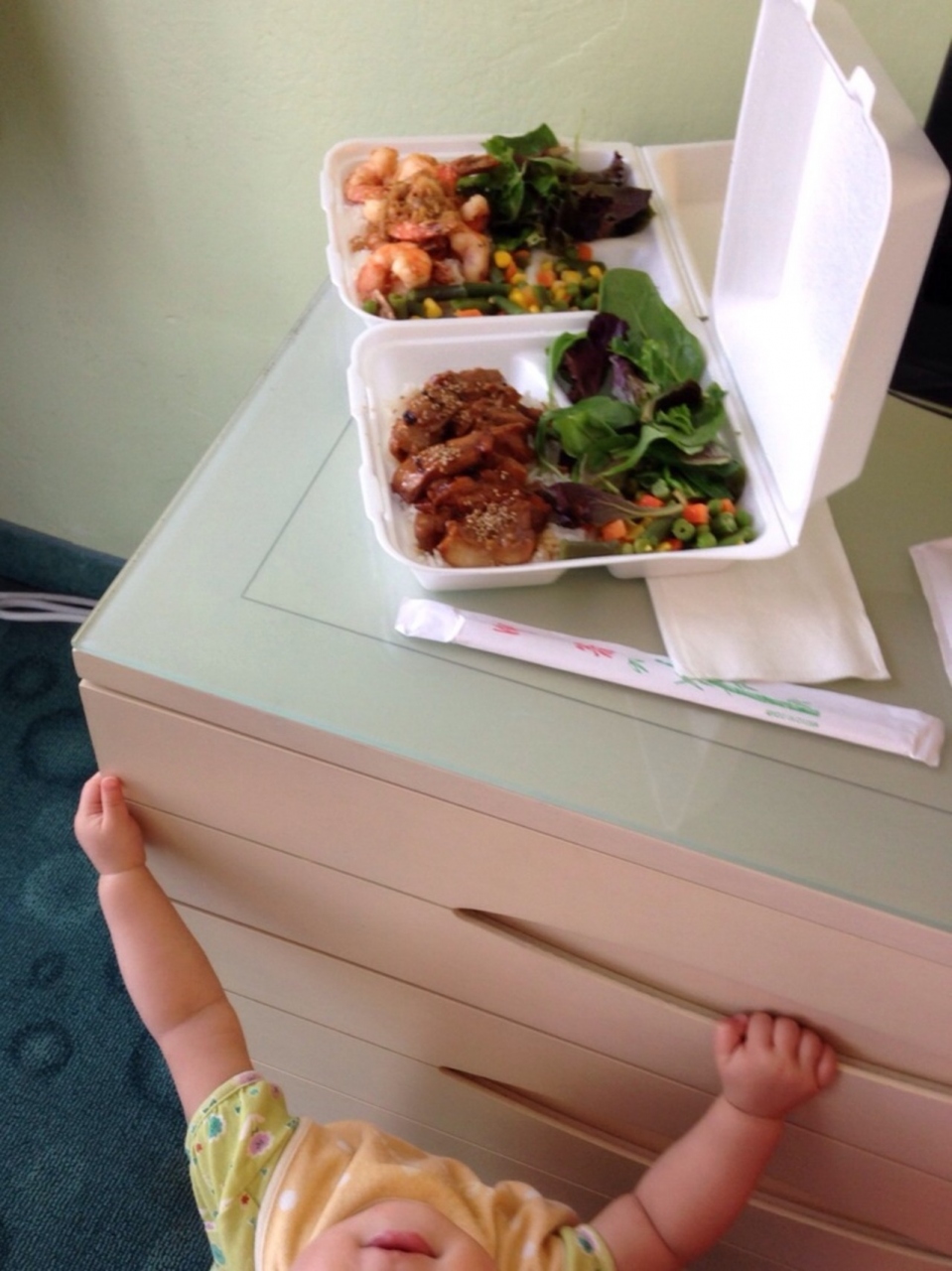 ランチプレートのお店です。僕らはテイクアウトでホテルの部屋で食べましたが、お店の横?裏?にあるベンチ・テーブルでも食べることもできます。2人で照り焼きチキンのプレートとガーリックシュリンプのプレートを頂きました。ライスもたっぷり入っており、美味しかったです。