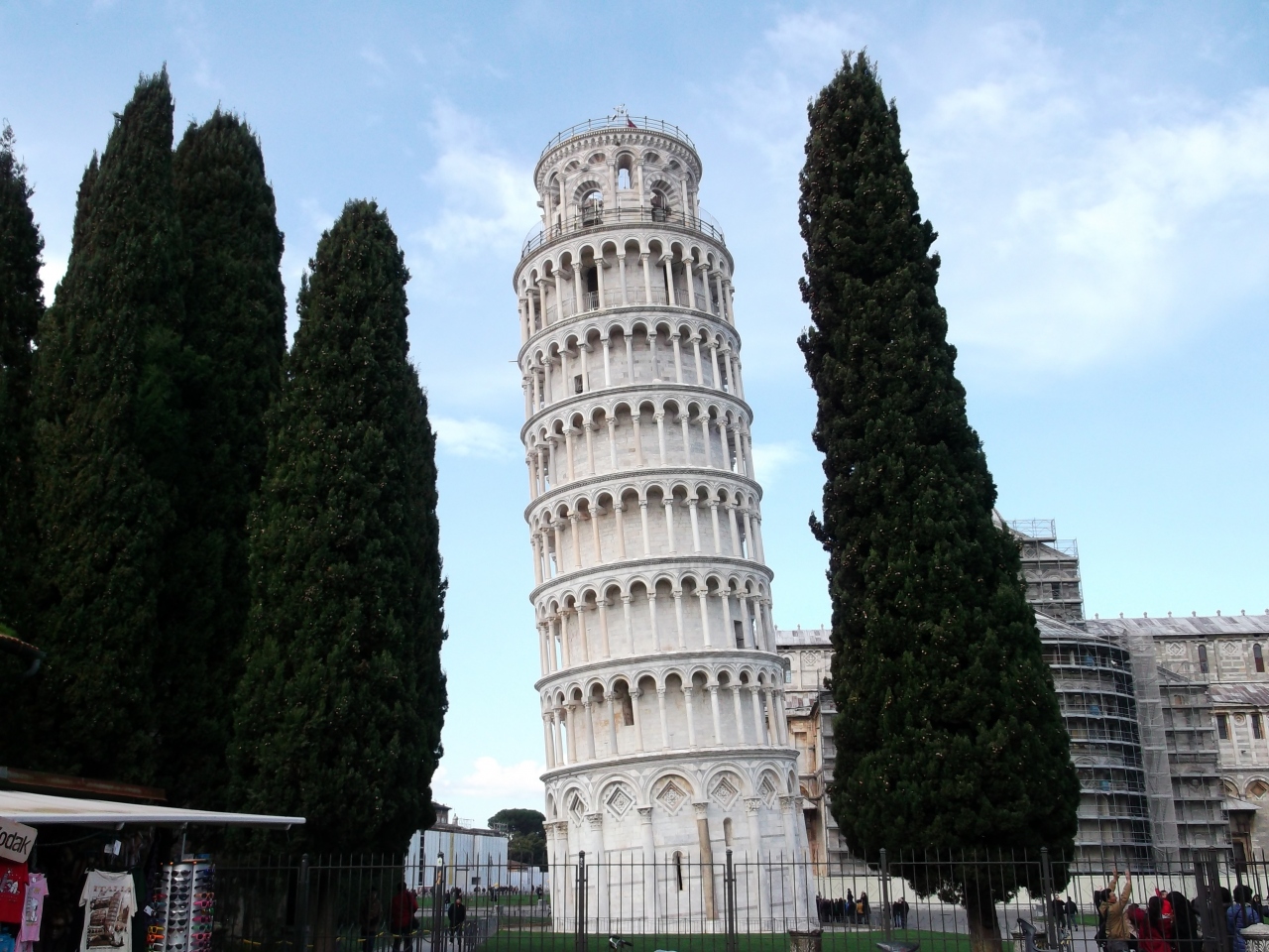 世界的に有名なピサロマネスク様式の大理石の鐘楼。