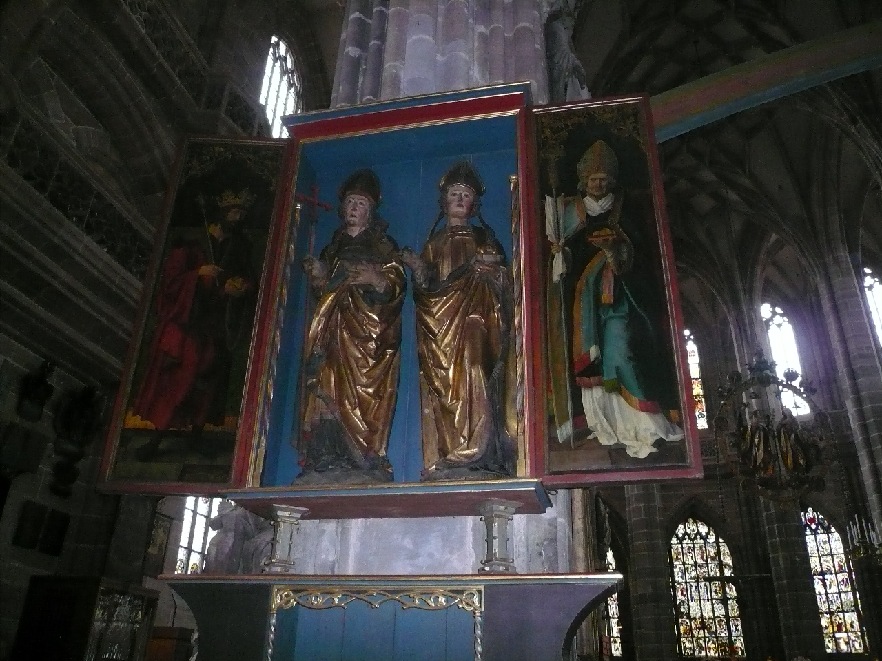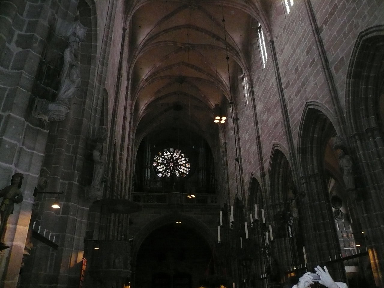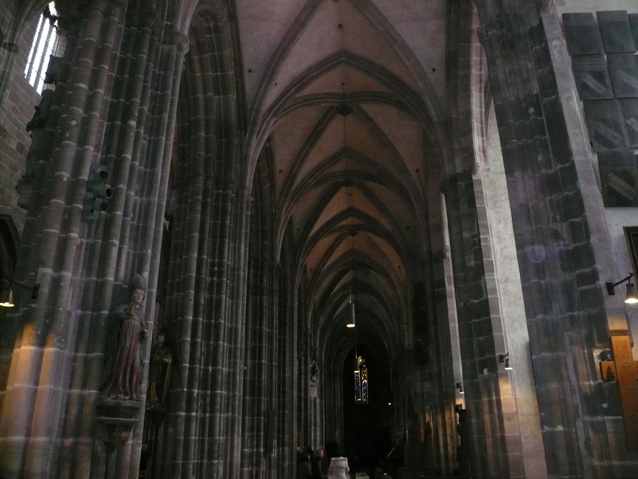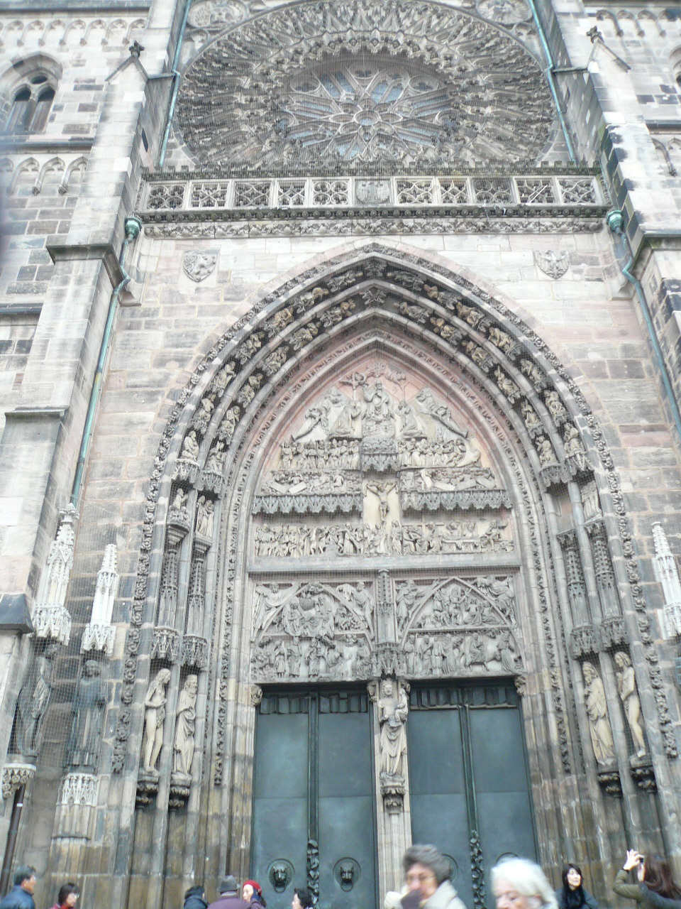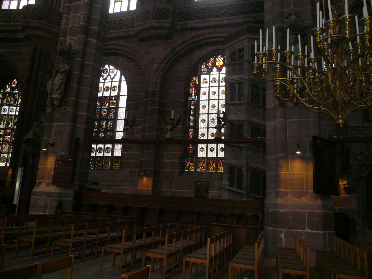 ニュルンベルグの旧市街、ローレンツ地区にあるゴシック建築の大きな教会です。ファサードも見ごたえがあります。ファイト・シュトース作のレリーフ『受胎告知』で有名な教会ですが、ステンドグラスもとても美しいです。