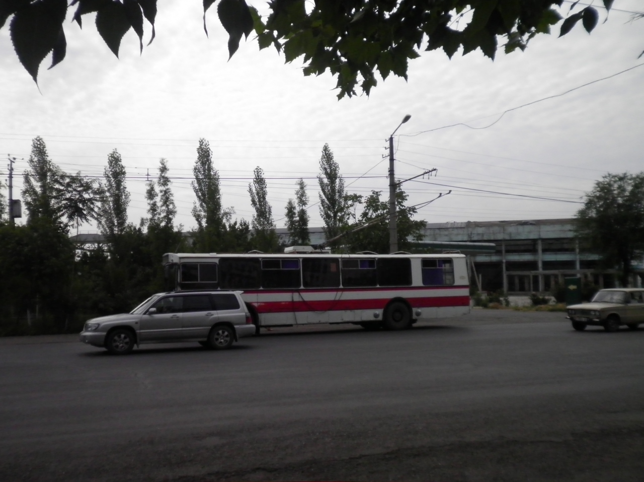 - 立派な木々の並木道、雪解け水の小川沿い、緑の林、トロリーバスが走るオシュ・ラザコフ大通り。