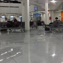 掃除が始まっている館内を散策していたら、チェックインカウンター前の椅子が集まっている場所で、数名がすでに夜明かしている風なのを発見。長椅子のほとんどが、肘掛が付いているタイプなのですが、ラッキーなことに肘掛のない長椅子を見つけることが出来、数時間寝ることができました。