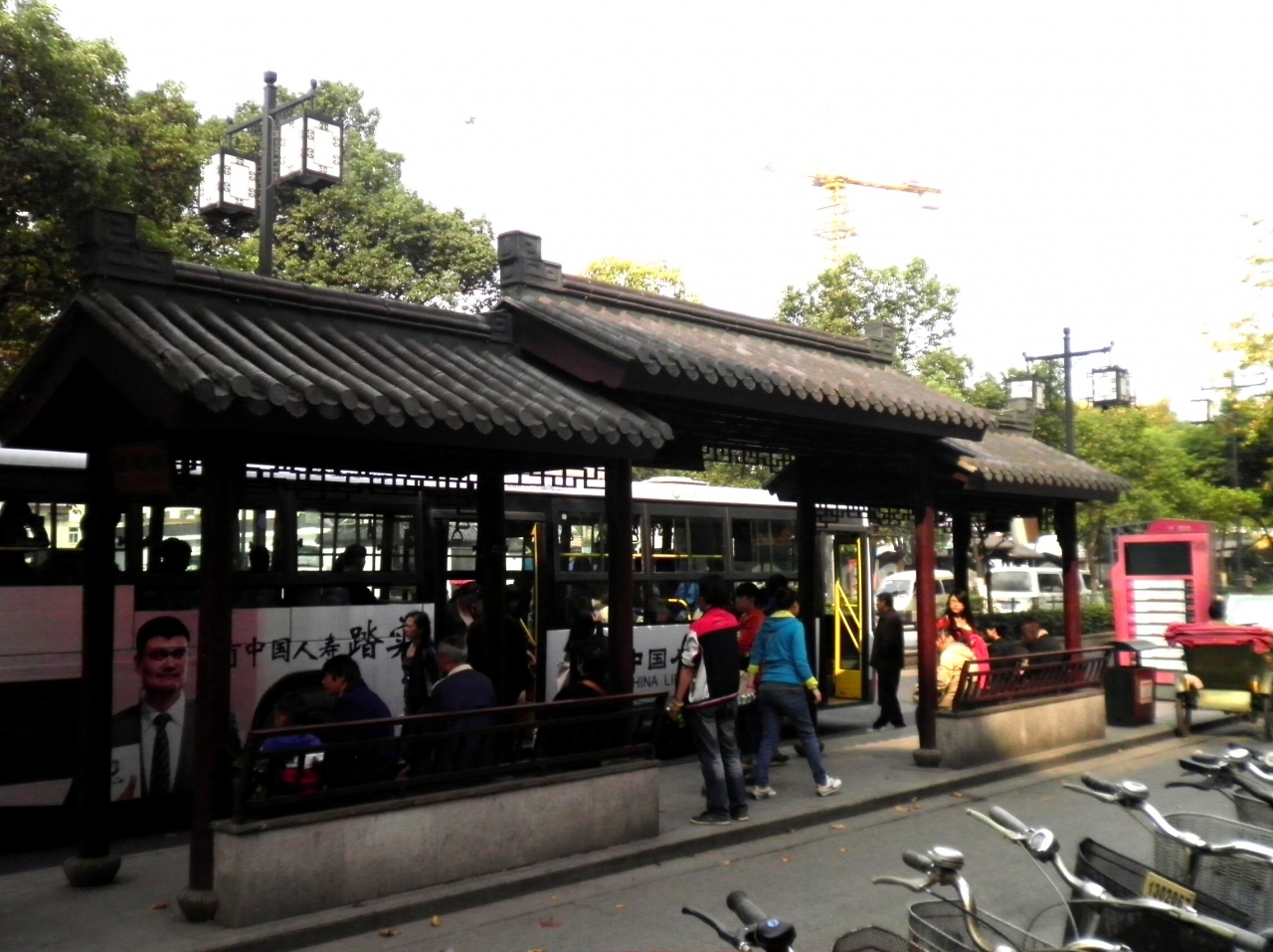 蘇州市内バス停はみんな古民家風で古都の風情にマッチしている