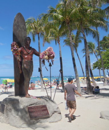 ワイキキビーチにあり、観光客がよく写真を撮っています。元オリンピック選手だったとのことでメダルも獲得したそうです。また、サーファーとしても有名だったそうで、「近代サーフィンの父」とみんなから尊敬されています