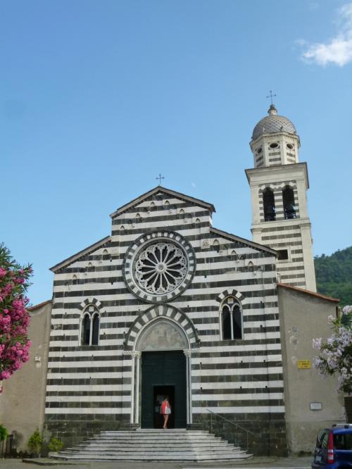 サン・アンドレア教会(カテドラル)はジェノバ風ゴシック様式である白と黒の縞模様。
