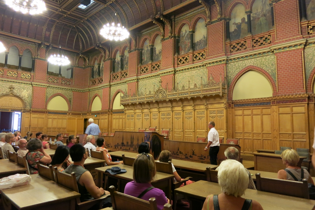 ガイドツアーはドイツ語のみですが、言葉が解らなくても参加して内部を見学する価値があると思います。議会場では着席させてくれて、参加者からの質問を受付していました。