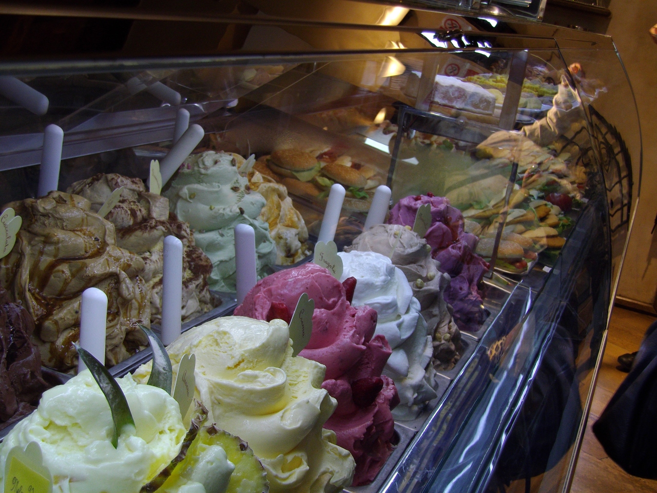 味はフィレンツでもミラノでも同じでしたが、ショーケースの中のジェラートがどこよりもきれいでした。