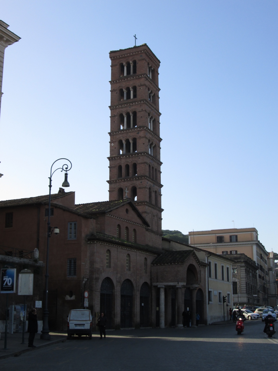 7層の美しい鐘楼を持つロマネスクのサンタ・マリア・コスメディン教会
