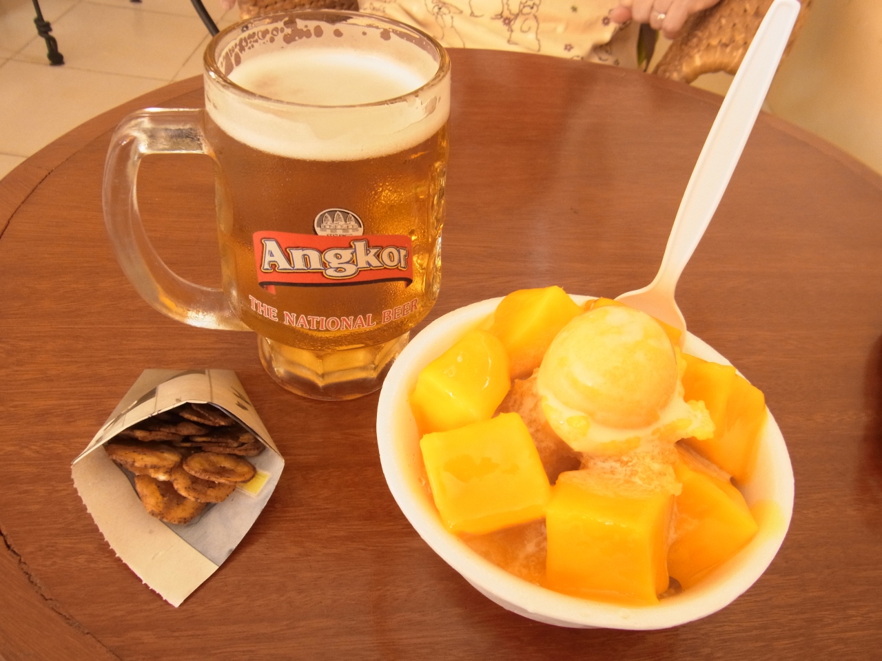 ソフィテルホテル、メリディアンホテルの向かいにあります。アンコールクッキーで有名なお店と同じ敷地内にあります。この付近には他特に見所はないのです。とにかく安いし、おいしいし、毎日通いたくなるくらい、マンゴー好きにはたまらないお店です。ご当地ビールもありました。もちろんギンギンに冷えてます!スタッフは明るくフレンドリーで、wifiの説明も丁寧に教えてくれました。エアコンもきいていて、快適で長居しちゃいました。