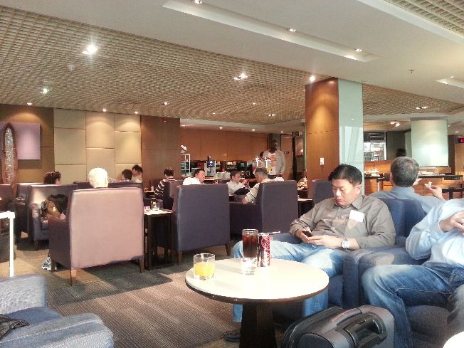 GETE-Fに近くにあるTGのラウンジ。メインのA-D方面と違って狭いので結構混んでます。混んでますが僕はこっちの方が好きですね。飲み物と食べ物が一か所に集中して配置されているからです。何時もはもう少し早いUA便ですので座れますが、今回NH便ですと席を探す位の混雑です。