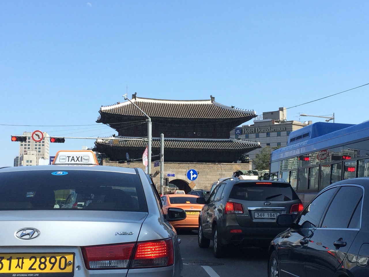 明洞から普門にあるブラウンホテルへタクシーで帰る際に、タクシーの運転手の方が必死に教えてくださいました。車からでもちゃんと見えるので、プチ観光のようでよかったです。またソウルに行った際はちゃんと降りて真下から見てみたいと思います。