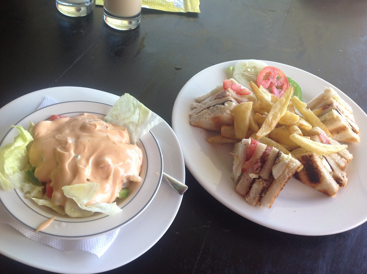 サンドイッチも美味しいし、サラダにはプリプリの小エビが沢山入っていて、マヨネーズ系のドレッシングと合いとても美味しかったです。