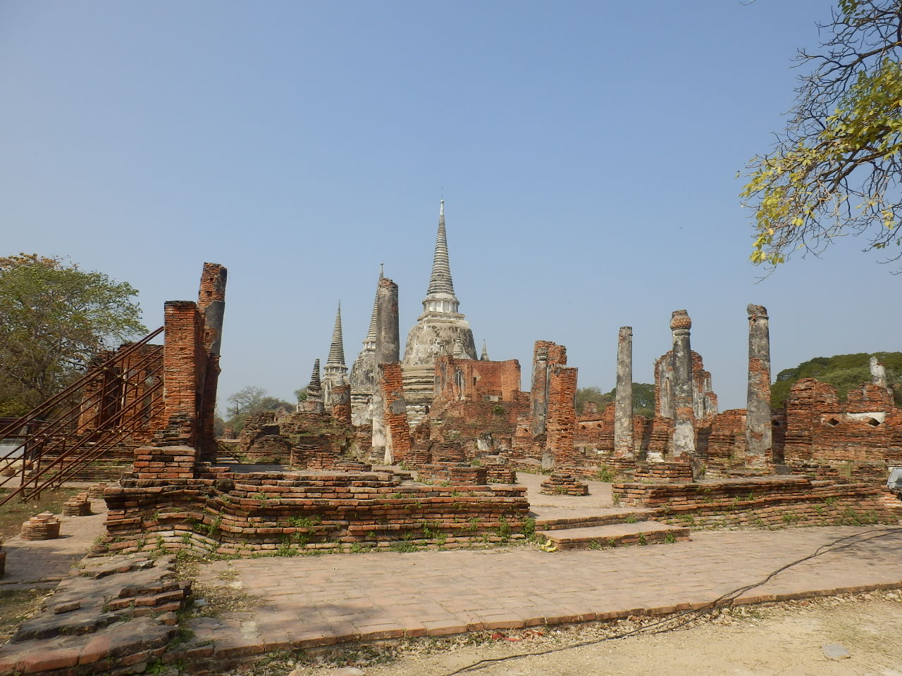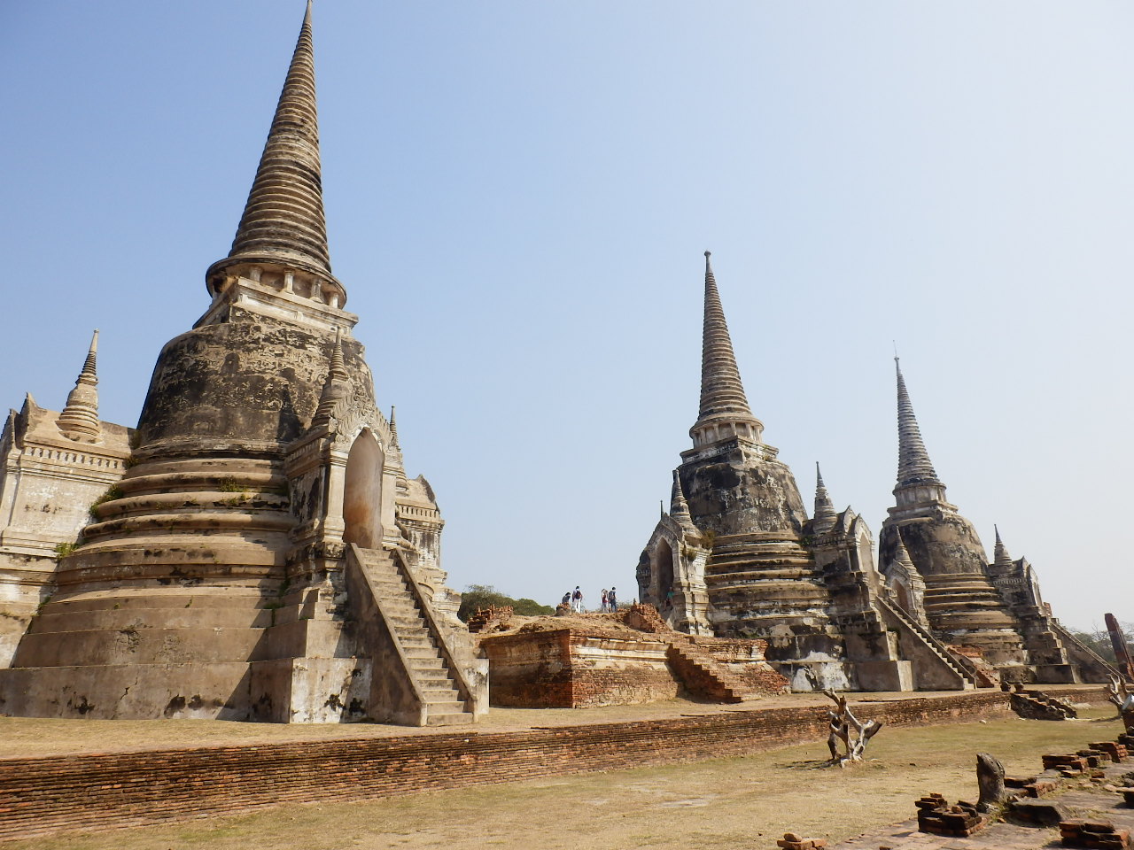 アユタヤ王宮内にあった最も重要な寺院、とのことですが、現在は大きな3つの仏塔と隣の建物の柱が建っているのみで、当時の面影はよくわかりません。これらの仏塔には王の遺骨が納められているそうです。
