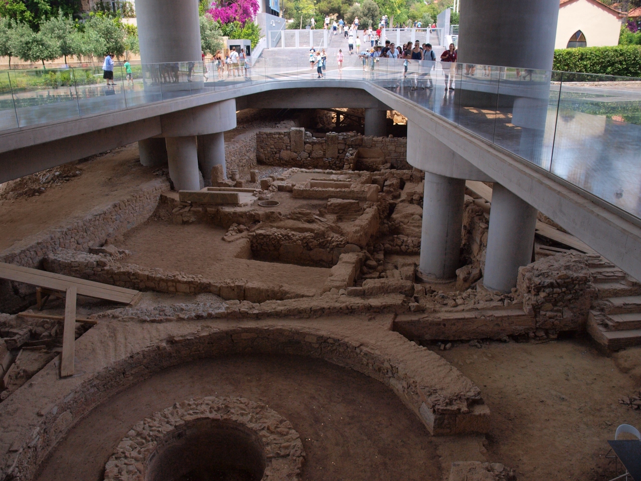 入り口の床はガラス張りで発掘中の遺跡が見えます。