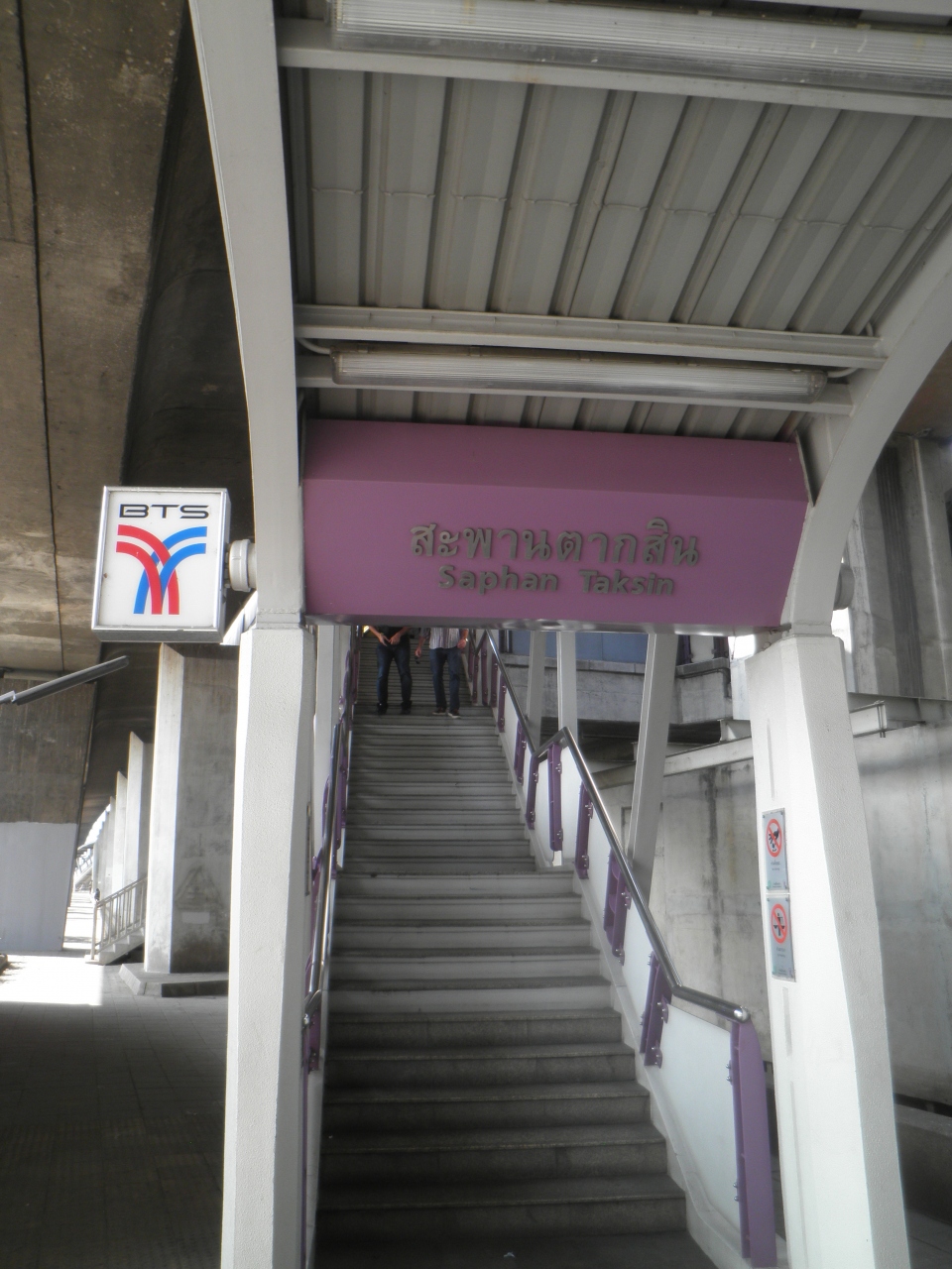 チャオプラヤーエクスプレスボートをおりて、船着き場からサパン・タクシン駅でBTSに乗り換えました。 この駅の近くには、緑の多い公園があり川の近くなのですがすがしい感じがしました。 トイレもあるのでボート利用者がよく立ち寄ります。 近くに船の形をした建物の寺院もあります。