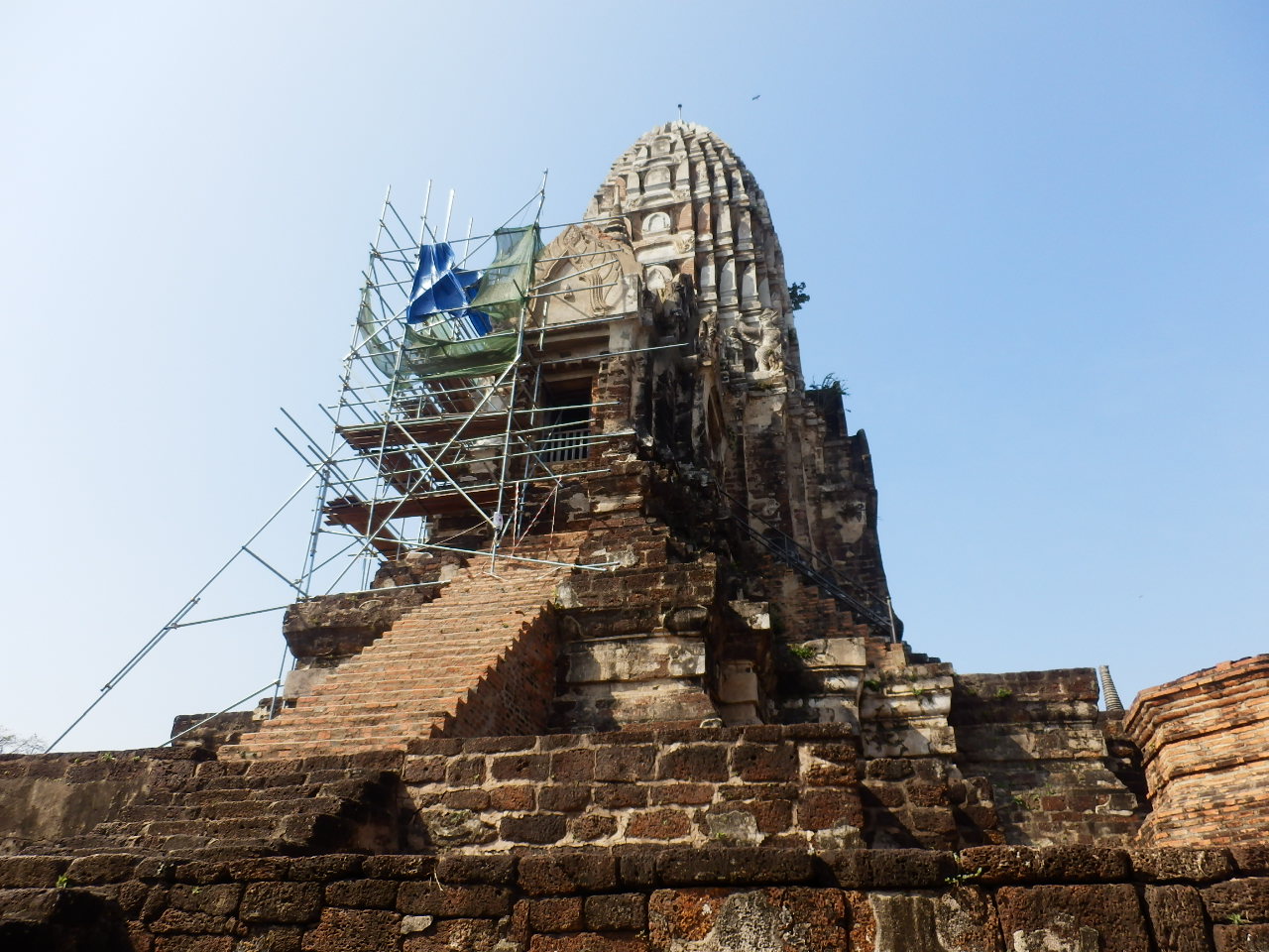 アユタヤの遺跡で、壁画が残っている場所は少ないと思いますし、塔に登れる場所も数えるほどなので、他の遺跡を差し置いてでも訪れる価値のある遺跡だと私は思いました。