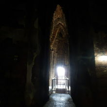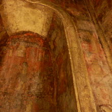 まず、高い塔には階段が付いていて登ることが出来ます。そして、塔の内部に入ると、急な下り階段があり、それを下りていくと壁画が見られるのです。