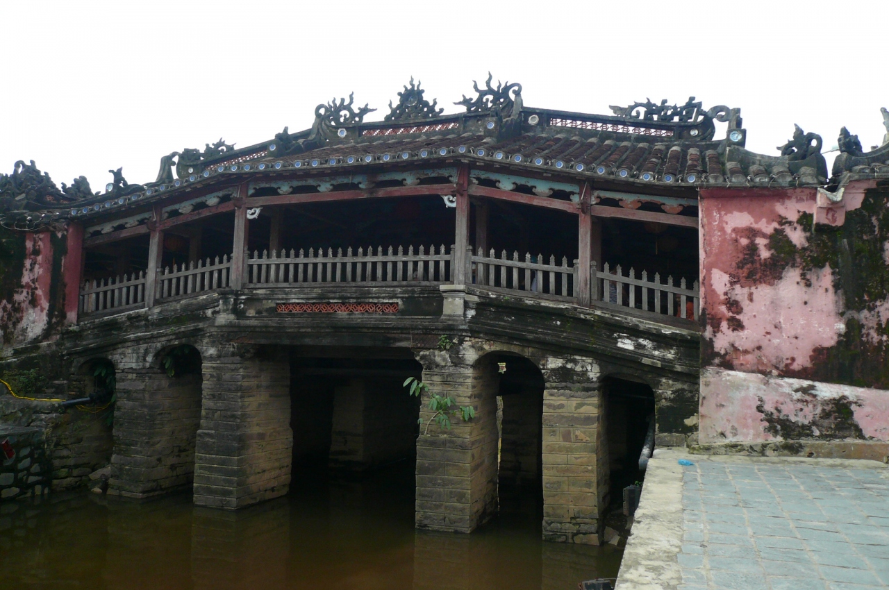 ユネスコ世界遺産に登録された古い街並みホイアンにある、日本人が造ったと言われる、別名「日本橋」です。屋根がついたこの橋は、観光客だけではなく、天秤のように前後に荷物を持った人など現地の人々の往来も結構ありました。