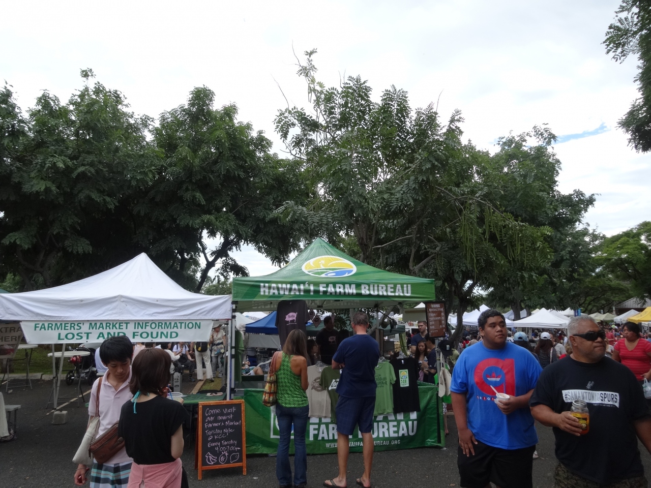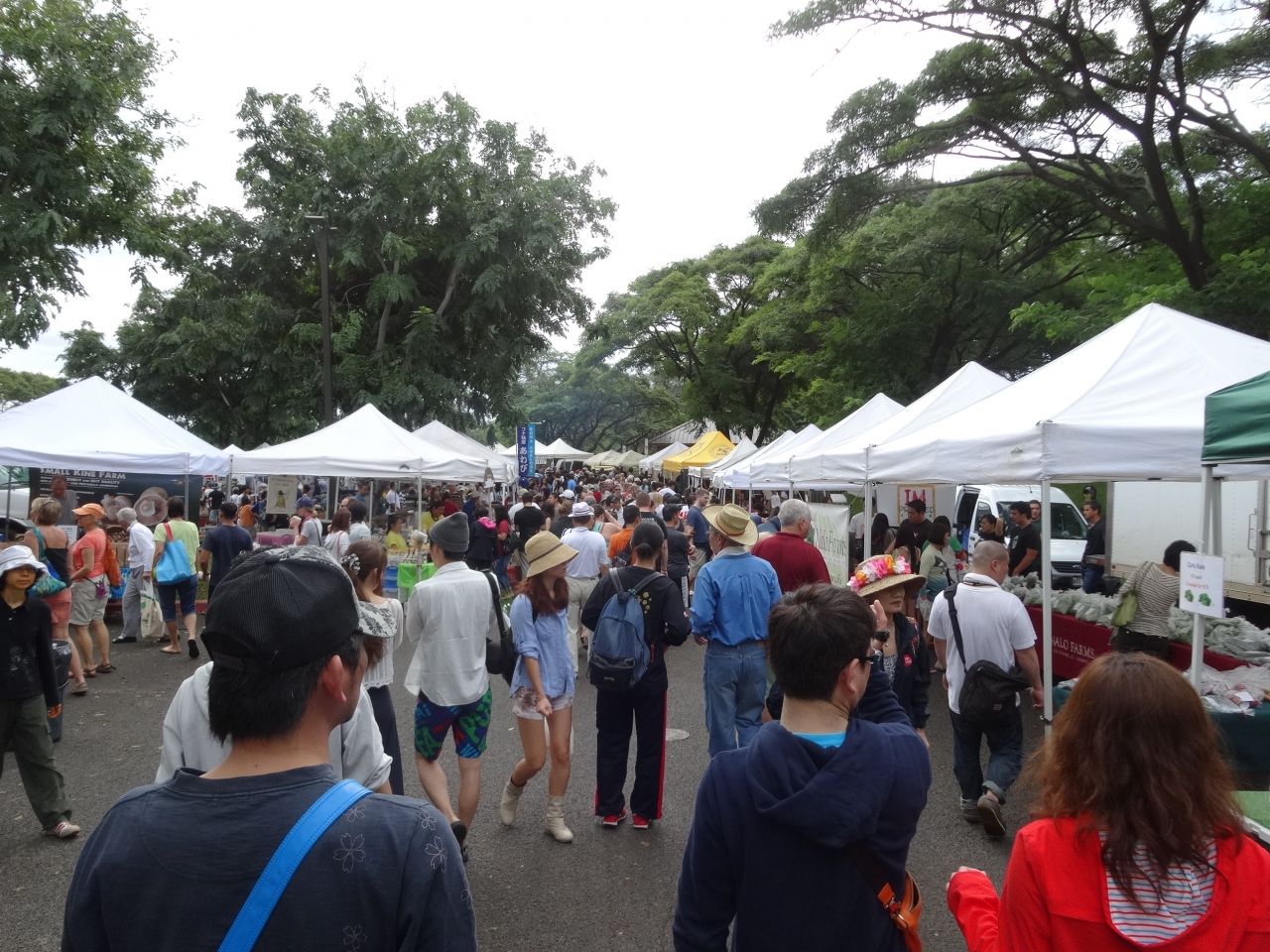土曜日限定ですが、朝からダイヤモンドヘッドに登山をしてそのあと、トロリーバスは土曜日だけKCCマーケットに停車してくれます。約50店ぐらい出ていましたが、飲食関連のお店が多くて、のどの渇きをいやしたり、アサイーボウルやフルーツ、おなかを満たしてくれるガッツリ系のお店のテントなどもあり、ベーカリーや野菜、フルーツなどのお店もあり、AM11時までです。