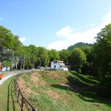 美しい広葉樹林を抜け、草原を爽快に走ると尾根の上へ。