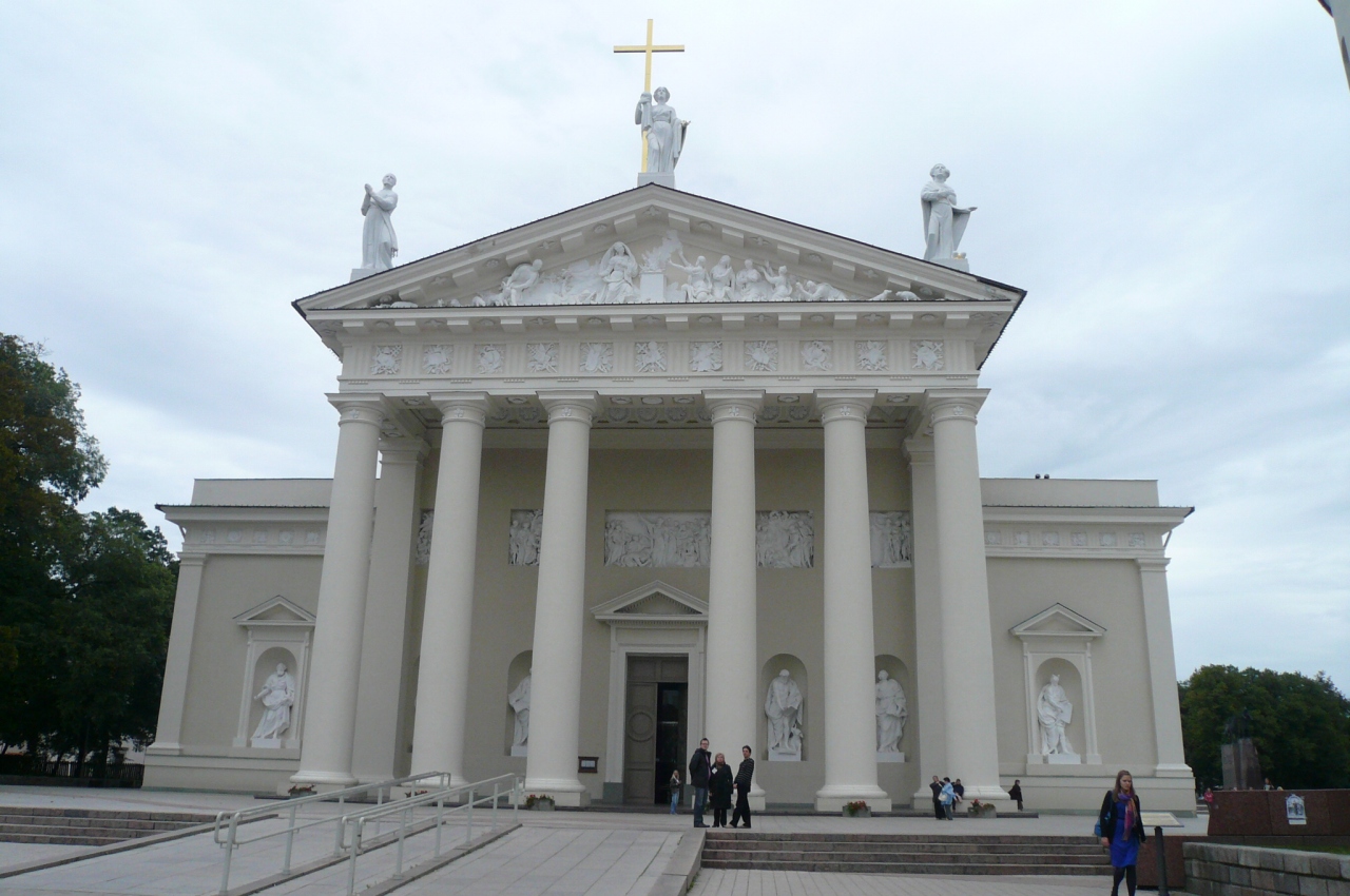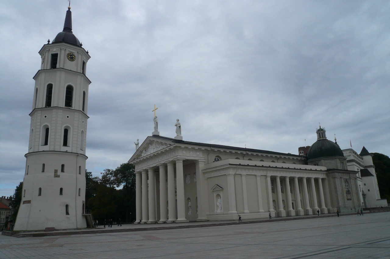 ヴィリニュス旧市街は、1994年ユネスコの世界遺産に登録されました。その中心にある大聖堂は、ヴィリニュスのシンボル的な教会です。白くて堂々とした大聖堂の屋根には、ソ連時代に撤去された三聖人の像が立っています。歴史の変遷を見るようです。