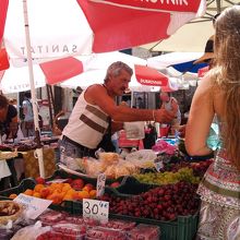 赤と白のパラソルが見ていてとてもかわいらしいです。