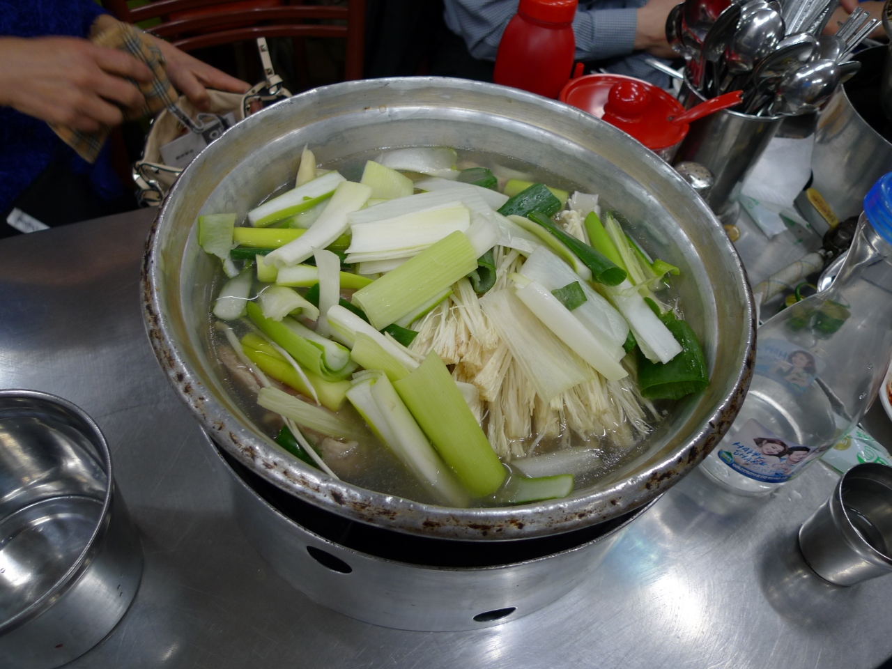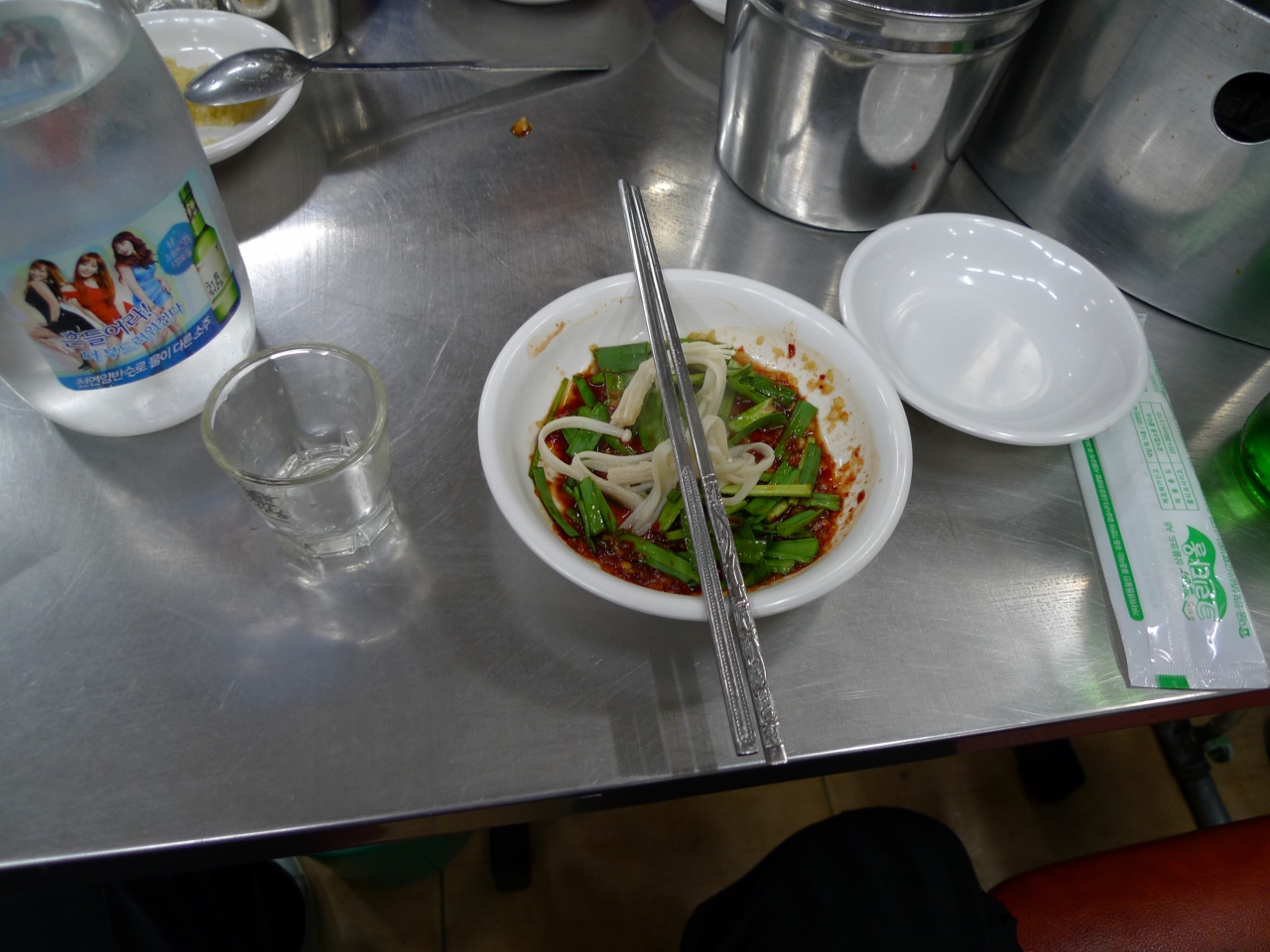 キムチを大量に入れたいのだが、自分で取ってくる方式でなくアジュマに持って来てもらう方式なので何度も言い難い。