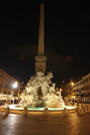 夜景を見に広場に行った。ナヴォーナ広場にはレストラン、雑貨店、ジェラード店等お店がひしめく。近くには教会もあり小道も夜景がよい。噴水の周りはカップル等多数の人が深夜まで騒がしい状況。スリも多いようなので気をつけた方がいいようだ。ブラジル大使館が広場内にある。